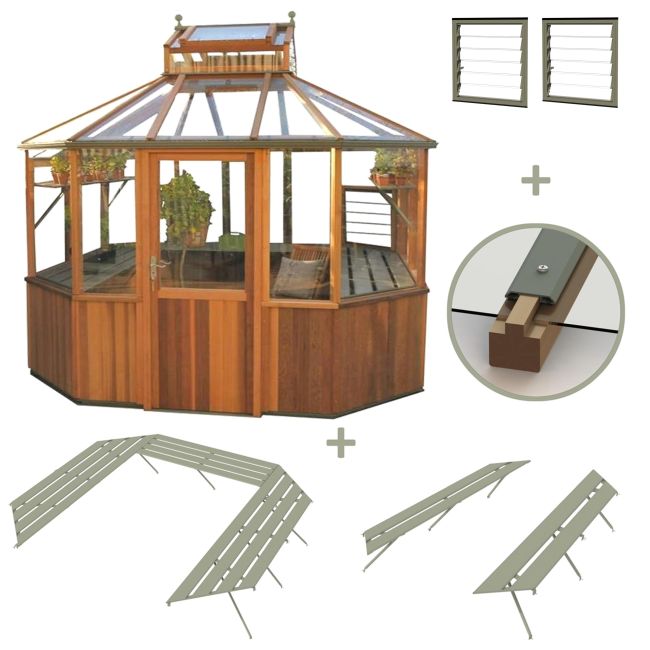 9 x 9 Alton Octagonal - Cedar Greenhouse Ultimate Package