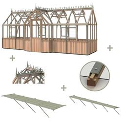 7 x 20 Alton Durham - Victorian Half Boarded 7ft Deep Cedar Greenhouse With Porch - Ultimate Package