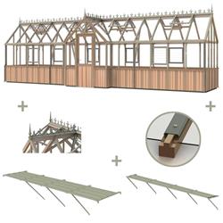 7 x 29 Alton Durham - Victorian Half Boarded 7ft Deep Cedar Greenhouse With Porch - Ultimate Package