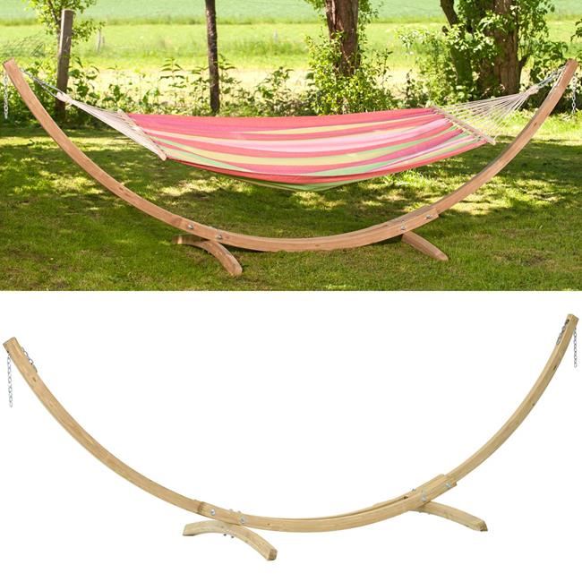 The Kronos is the smallest wooden AMAZONAS hammock frame. Just like the larger models, it is handmade with European spruce wood and weatherproofed for years via dip impregnation and galvanized fittings. Due to the especially developed chain suspension, Kronos is adjustable for hammocks with a total length between 270 and 320 cm. Able to withstand a load of up to 120 kg.