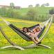 Noble hammock frame carefully handmade from European spruce and weather-proofed. The high quality layered gluing ensures not only a fabulous design, but also greatest stability and safety. Can be easily adjusted for AMAZONAS hammocks from 340 to 420 cm in length. Able to withstand a load of up to 200 kg!
