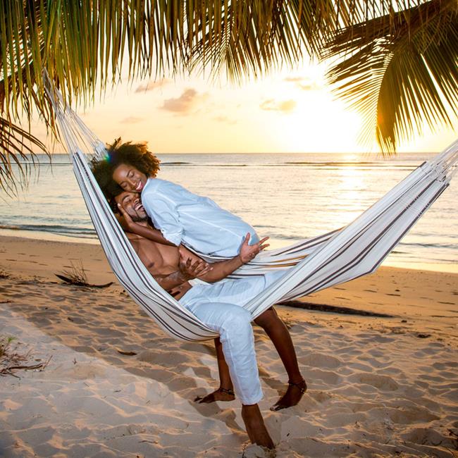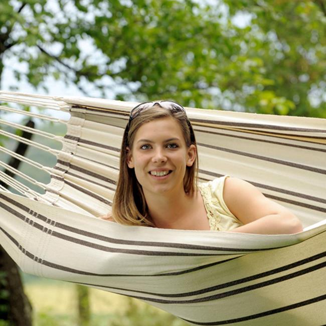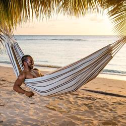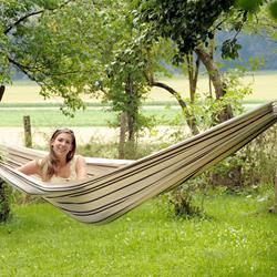 Barbados is the hammock for a relaxed games of doubles. Super-wide, snugly comfortable, very robust and virtually indestructible, it is the ideal place for couples. Of course, it is also possible to lie alone in Barbados and dream of how nice it would be to share the hammock happiness ... Whether hung on the balcony, in the garden or indoors, whether for first-timers, up-graders or real hammock experts, Barbados is always exactly the fitting, colourful decoration for every place, similarly as a present that gives everyone pleasure.
