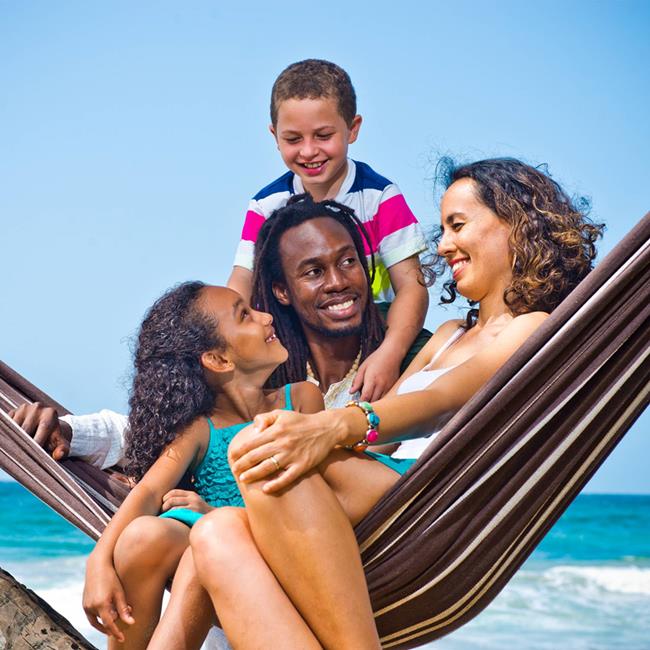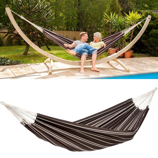 Barbados is the hammock for a relaxed games of doubles. Super-wide, snugly comfortable, very robust and virtually indestructible, it is the ideal place for couples. Of course, it is also possible to lie alone in Barbados and dream of how nice it would be to share the hammock happiness ... Whether hung on the balcony, in the garden or indoors, whether for first-timers, up-graders or real hammock experts, Barbados is always exactly the fitting, colourful decoration for every place, similarly as a present that gives everyone pleasure.