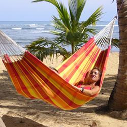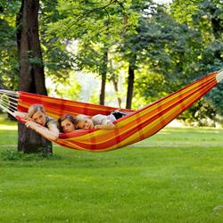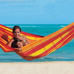 Barbados is the hammock for a relaxed games of doubles. Super-wide, snugly comfortable, very robust and virtually indestructible, it is the ideal place for couples. Of course, it is also possible to lie alone in Barbados and dream of how nice it would be to share the hammock happiness ... Whether hung on the balcony, in the garden or indoors, whether for first-timers, up-graders or real hammock experts, Barbados is always exactly the fitting, colourful decoration for every place, similarly as a present that gives everyone pleasure.