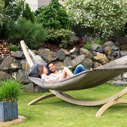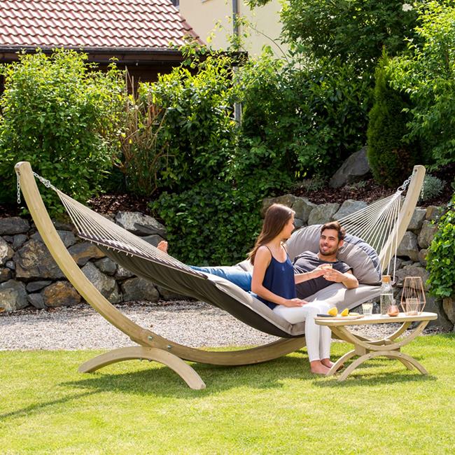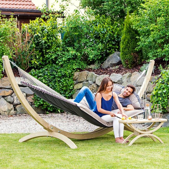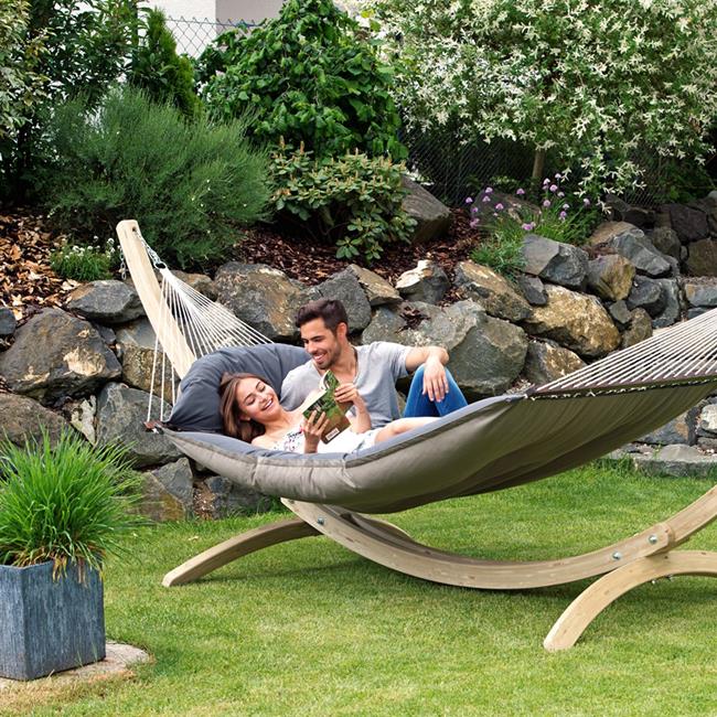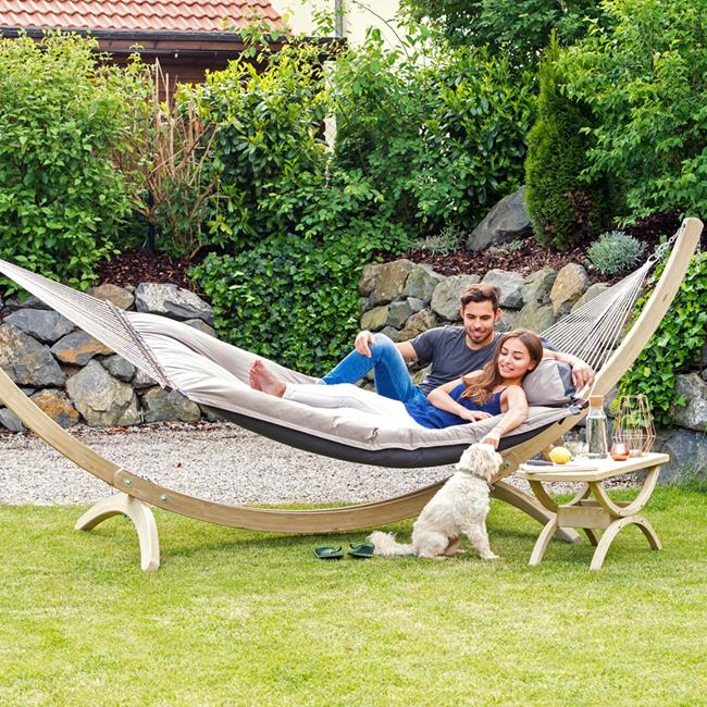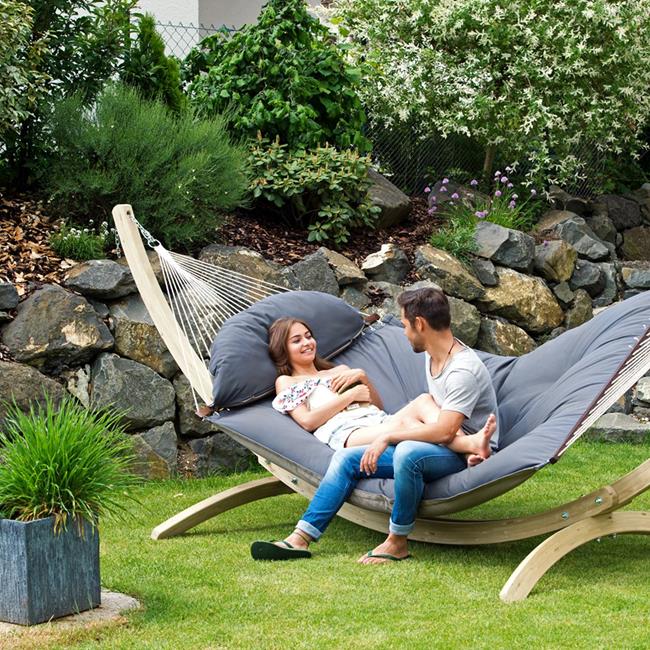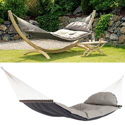 This hammock is extra-thick, water-repellent and rapidly drying upholstery is your guarantee of perfect relaxation. The highly durable Agora cover is as really soft, but it is exceptionally light-resistant and weatherproof. It is also water-repellent, proof against mildew, insensitive to dirt and easy to clean.
