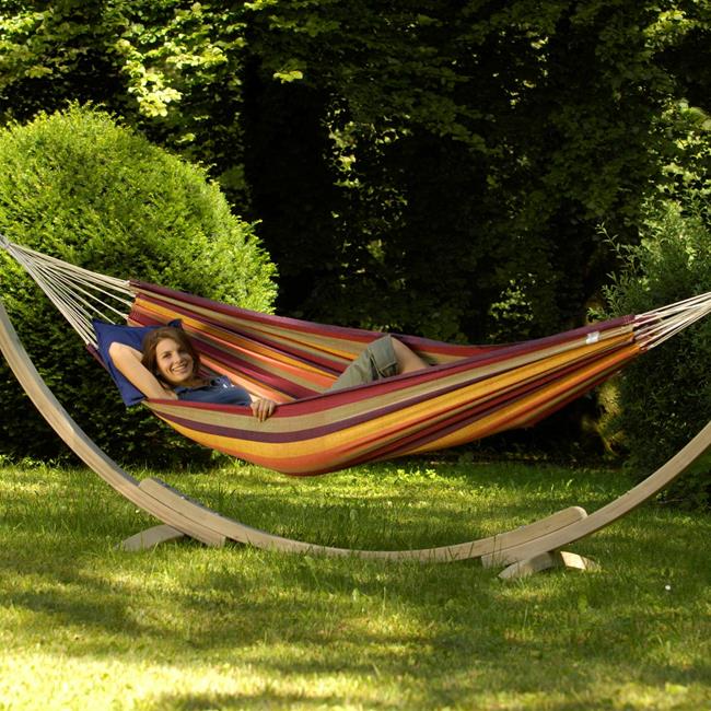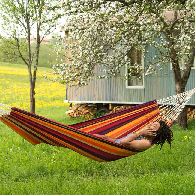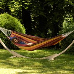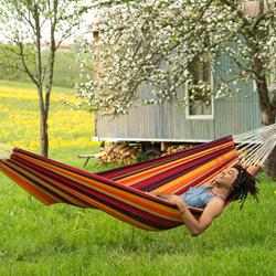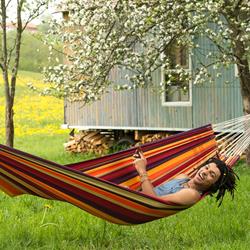 Brazilian hammocks in size L are just the thing for adventurous singles that like to travel light but do not want to do without their hammocks. Single hammocks are big enough for one person to lie comfortably in, and just small and light enough to be packed up to become the ideal travel companion, and still leave space in even the smallest backpack. Naturally a wonderful Siesta swing in the home and garden too.