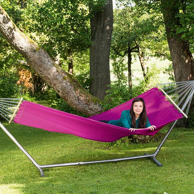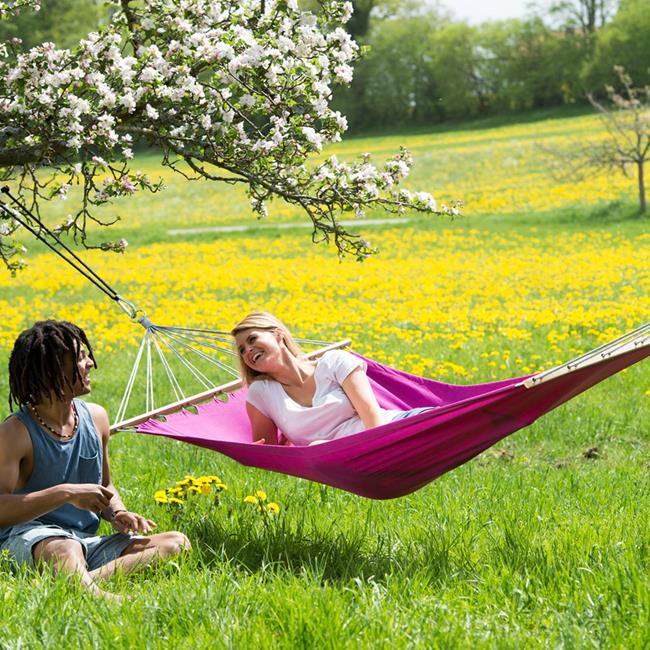 The Miami hammock has extra long spreader bars to provide super-comfy relaxation. This trendy hammock is available in modern colours.