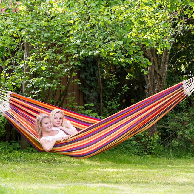 Paradiso is the best in Brazilian hammock comfort and something quite special: Only very few looms are suitable for making a 1.75 m wide sheet. In order to make this giant hammock both extra sturdy and super soft at the same time, almost 5.000 threads are woven together!