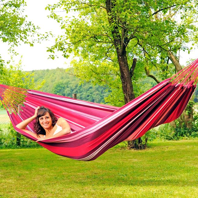 The hammock in typical Brazilian style is made of weatherproof and UV-resistant EllTex material, which is extra long lasting and as soft as cotton.