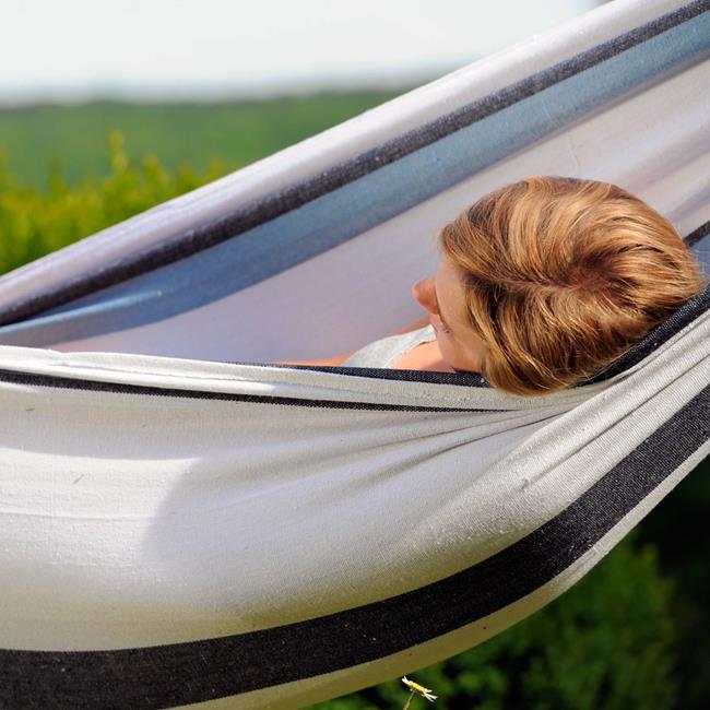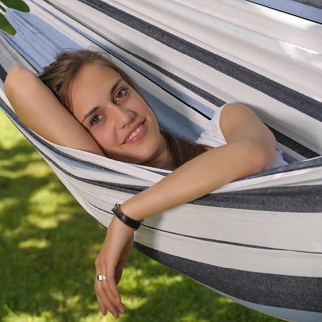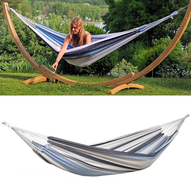 The hammock in typical Brazilian style is made of weatherproof and UV-resistant EllTex material, which is extra long lasting and as soft as cotton.