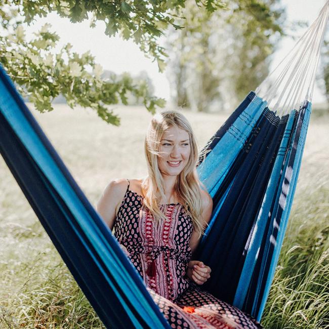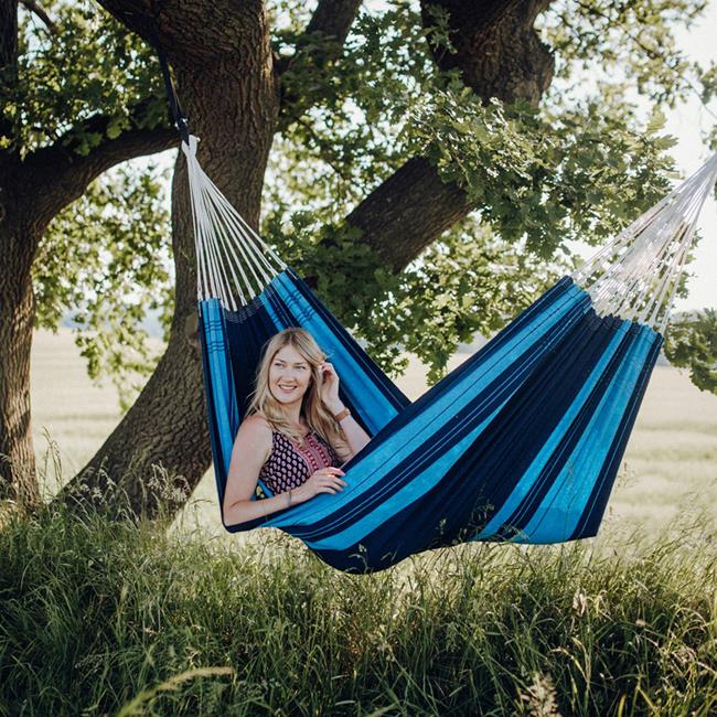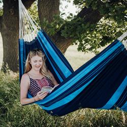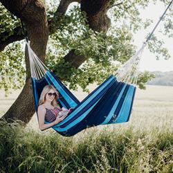 The Santana combines Brazilian craftsmanship with brightly gleaming colours and soft, silky but durable threads. This makes even a small-scale hammock supremely comfortable. To achieve the most comfortable position, leave a deep sag in the centre and lie in the hammock diagonally.