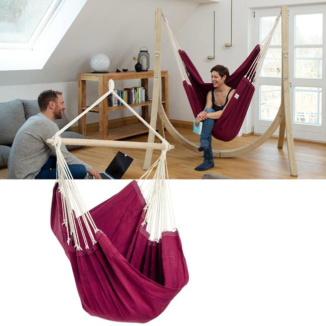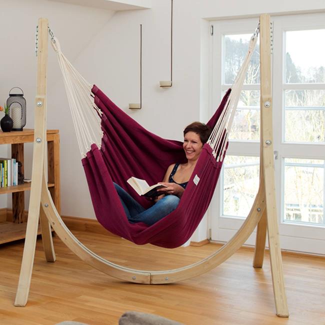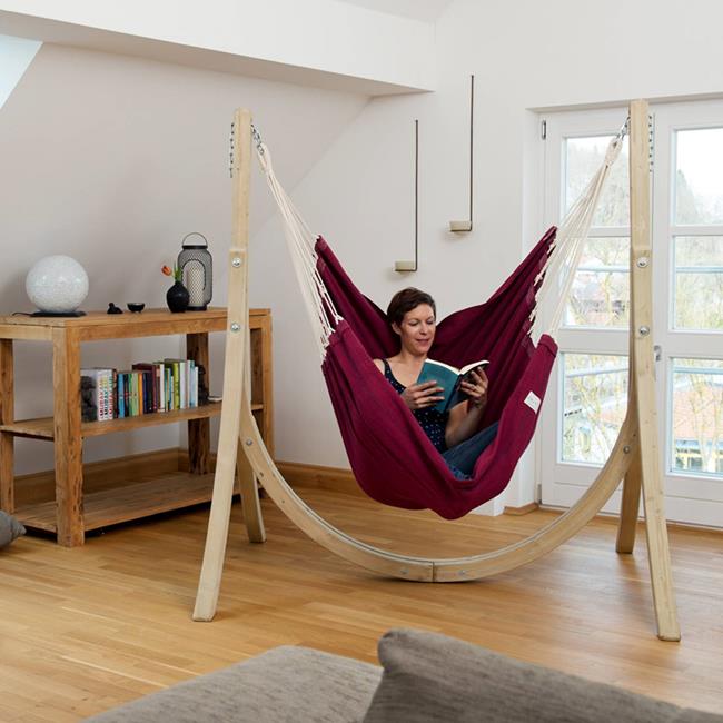 The Artista chair has a strong 40 mm diameter x 1.10 m long wood bar with a special design that secures the ropes and prevents sliding toward the center.