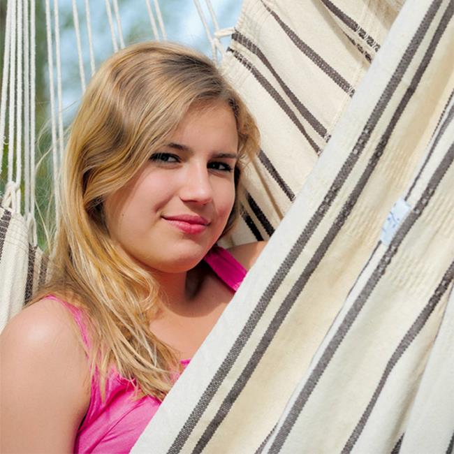 From Brazil, the home of the best siestas in the world, comes the place for dreaming. With a width of 1.30 m and a length of 1.60 m, the Brasil is king size and therefore almost as big as a classical Brazilian hammock. The quadruple stitched ends and the extra thick 400 g/m² woven material guarantee the highest sturdiness, as with all of our Brazilian hammocks.