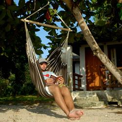 From Brazil, the home of the best siestas in the world, comes the place for dreaming. With a width of 1.30 m and a length of 1.60 m, the Brasil is king size and therefore almost as big as a classical Brazilian hammock. The quadruple stitched ends and the extra thick 400 g/m² woven material guarantee the highest sturdiness, as with all of our Brazilian hammocks.