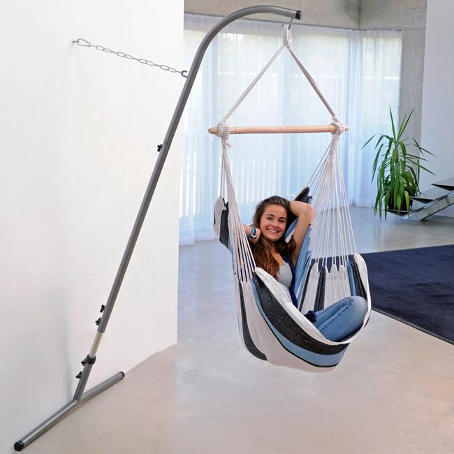 What goes for hammocks also goes for hanging chairs, weatherproof, super sturdy and nevertheless snug and soft thanks to EllTex