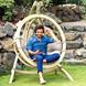 A hanging chair of quality, made from weather-resistant treated spruce. The high-class laminated gluing makes it particularly stable and secure. The extra-thick, water-repellent and rapidly drying upholstery makes for perfect relaxation. These are really soft and they are also extremely durable, highly light-resistant and weatherproof. Moreover they are water-repellent, proof against mildew, insensitive to dirt and easy to clean.