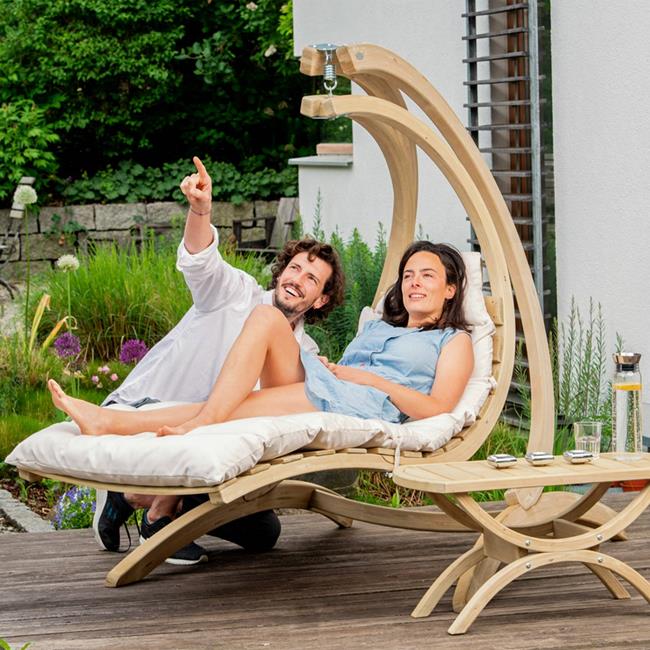The Swing Lounger is the product of painstaking craftsmanship, and is made from weather-resistant treated spruce. The high-class laminated gluing makes it particularly stable and secure.