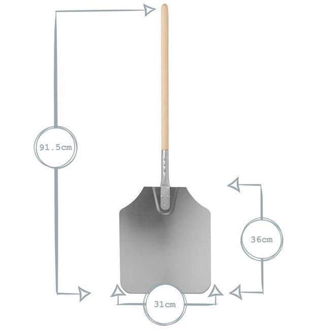 Transfer homemade pizzas,bread and pastries to and from the oven in traditional Italion restaurant style with this 91.5cm Aluminium Pizza Peel with Wooden Handle.