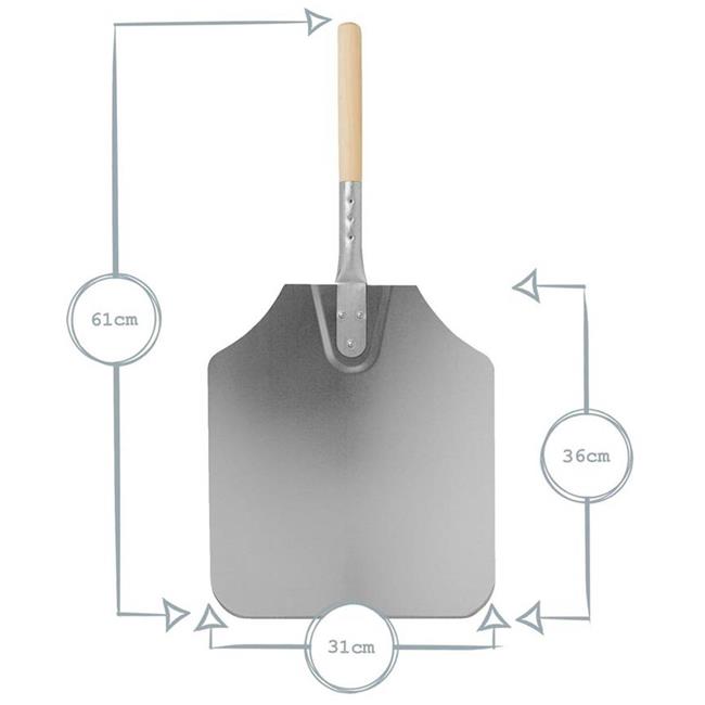 Transfer homemade pizzas,bread and pastries to and from the oven in traditional Italion restaurant style with this 61cm Aluminium Pizza Peel with Wooden Handle.