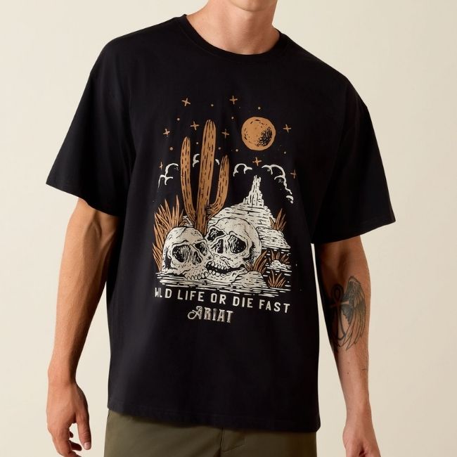 Ariat Mens Clothing - Wild Life Boxy T-Shirt . Washed Black