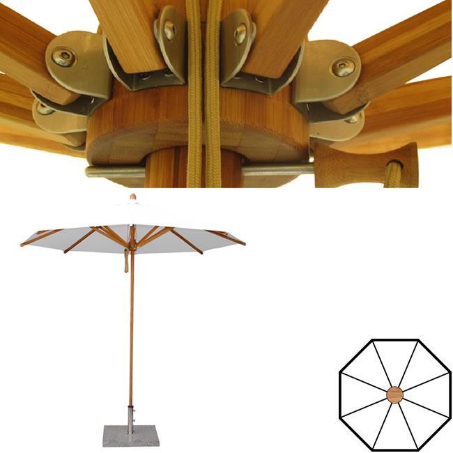 The Levante Parasols are Bambrella’s most premium and popular parasol, made using a single piece pole for extra strength and durability. The pole, ribs, hubs, runner and finial are all made using laminated bamboo and all metal fittings are 304 stainless steel. Their double pulley and rope system ensures easy raising and lowering of the parasols, even on the largest of models.