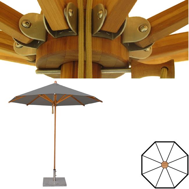 The Levante Parasols are Bambrella’s most premium and popular parasol, made using a single piece pole for extra strength and durability. The pole, ribs, hubs, runner and finial are all made using laminated bamboo and all metal fittings are 304 stainless steel. Their double pulley and rope system ensures easy raising and lowering of the parasols, even on the largest of models.