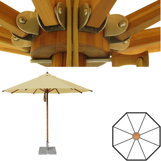 The Levante Parasols are Bambrella’s most premium and popular parasol, made using a single piece pole for extra strength and durability. The pole, ribs, hubs, runner and finial are all made using laminated bamboo and all metal fittings are 304 stainless steel. Their double pulley and rope system ensures easy raising and lowering of the parasols, even on the largest of models.