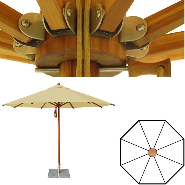The Levante Parasols are Bambrella’s most premium and popular parasol, made using a single piece pole for extra strength and durability. The pole, ribs, hubs, runner and finial are all made using laminated bamboo and all metal fittings are 304 stainless steel. Their double pulley and rope system ensures easy raising and lowering of the parasols, even on the largest of models.