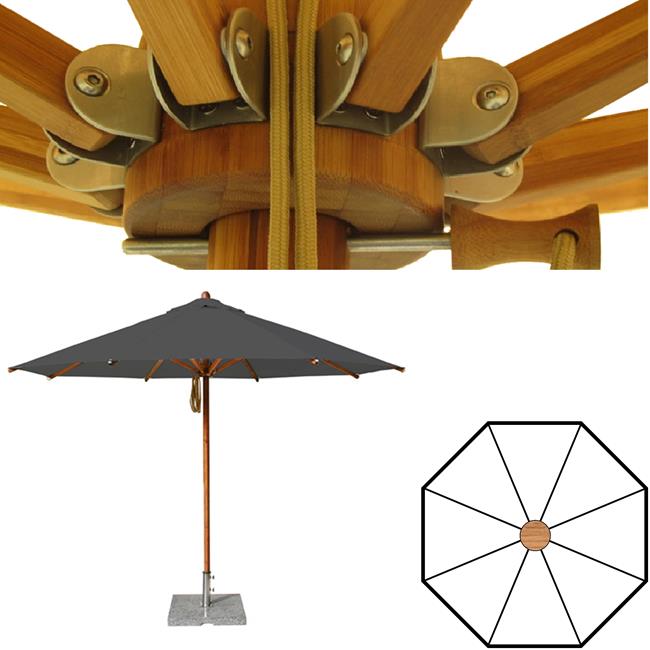 The Levante Parasols are Bambrella’s most premium and popular parasol, made using a single piece pole for extra strength and durability. The pole, ribs, hubs, runner and finial are all made using laminated bamboo and all metal fittings are 304 stainless steel. Their double pulley and rope system ensures easy raising and lowering of the parasols, even on the largest of models.