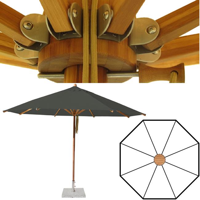 The Levante Parasols are Bambrella’s most premium and popular parasol, made using a single piece pole for extra strength and durability. The pole, ribs, hubs, runner and finial are all made using laminated bamboo and all metal fittings are 304 stainless steel. Their double pulley and rope system ensures easy raising and lowering of the parasols, even on the largest of models.