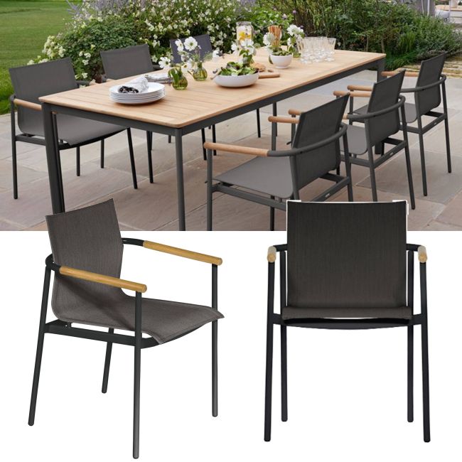 Barlow Tyrie AROUND is a fusion of premium grade plantation Teak with powder coated Aluminium. Stackable dining and carver armchairs with comfortable Sunbrella chair slings and a choice of 154 and 215cm dining tables to accommodate 4 - 8 guests - multiple tables can be placed in a row to create tables to seat as many guests as you wish. Available in a range of Dining and Modular Outdoor Lounge furniture