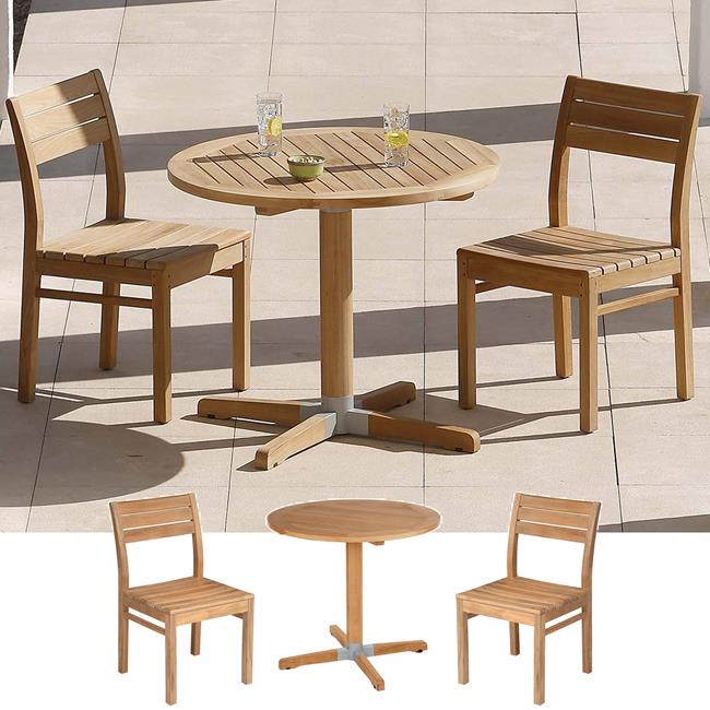 Barlow Tyrie Bermuda - 2 Seater 90cm Round 3pc Teak Dining Set