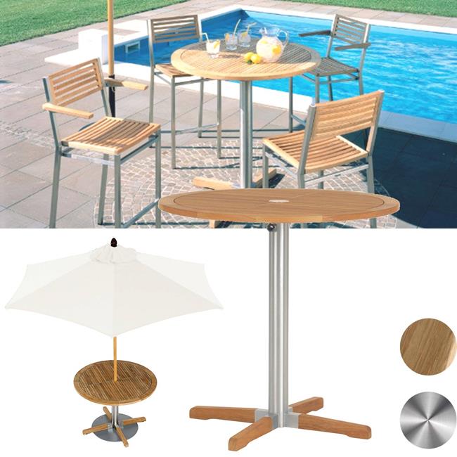 Barlow Tyrie Equinox Stainless Steel - 100cm Circular High Table with Steel Leg and Teak Feet