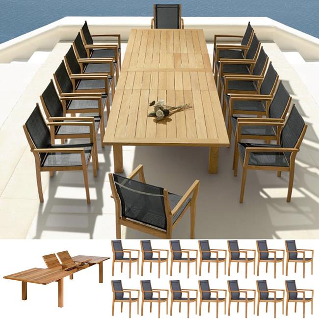![]() 14 Seater Horizon | Apex Set 1 No. 268-392 x 119cm Extending Apex Teak Table 14 No. Horizon Stacking Teak & Textilene Armchairs Availability: IN STOCK Product Code: BARLOWHORIZSET004 |