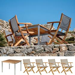 ![]() 4 Seater Horizon | Equinox Set 1 No. 100 x 97cm Equinox Dining Table 4 No. Horizon Teak & Textilene Folding Carver Armchairs Teak Top Table Availability: Usually Available From Stock Please call 0116 267 7091 Product Code: BARLOWHORIZSET001 |