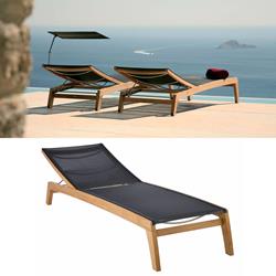 A stylish, well proportioned lounger with extra width and a higher back for maximum comfort. Adjustable backrest and choice of Textilene sling colours. This lounger has small wheels concealed in the legs and optional sunshade