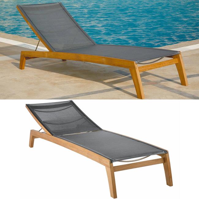 A stylish, well proportioned lounger with extra width and a higher back for maximum comfort. Adjustable backrest and choice of Textilene sling colours. This lounger has small wheels concealed in the legs and optional sunshade