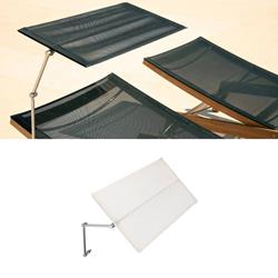 Textilene clip on lounger sun shade for Horizon and Equinox loungers. This sunshade is to protect & shade your face for easy reading etc when lying in strong sunlight and can be fitted to Barlow Tyrie Horizon or Equinox Sun Loungers, with a simple locking nut, to the hole awaiting, already in this range of loungers, all fixings supplied, a 2 minute fix.