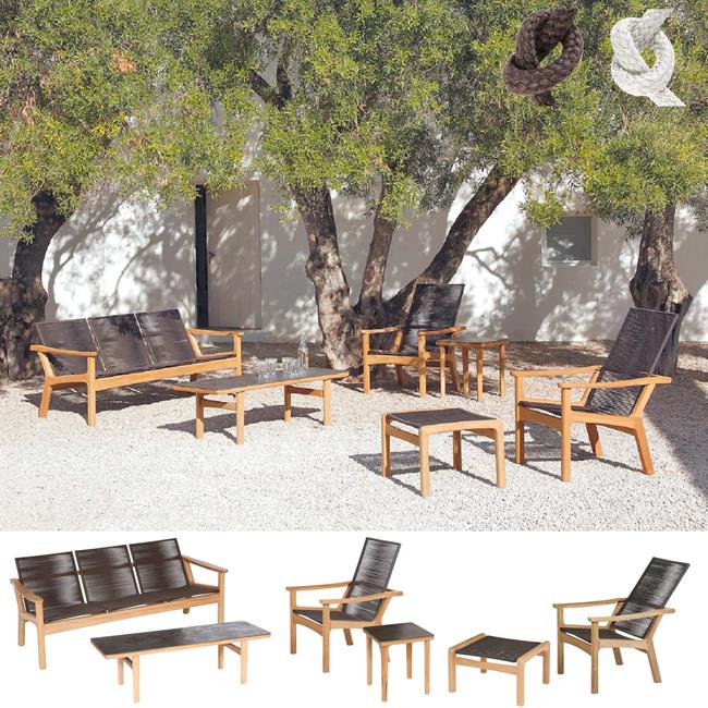 Designed by Mark Tyrie, with sculptured lines of Gorgeous plantation Teak, Monterey dining tables are available in Frost White Ceramic or Oxide - a dark mottled slate colour for the table tops. And the complimenting armchairs with either Chalk white or Brown braided cord. There is a matching range of Monterey relaxed low seating which uniquely reclines with footrest & ceramic top occasional tables