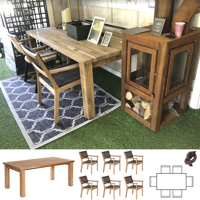 ![]() 6 Seater Dining Set 1 No. 180 x 100cm Titan Teak Table 6 No. Monterey Teak & Cord Dining Armchairs Brown All Weather Cord IN STOCK Availability: IN STOCK Product Code: BARLOWMONTITANSET6 |