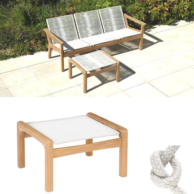 This elegant ottoman | footrest is built using quality materials and refined traditional construction methods. Sculptured using a solid teak frame with braided cord for seat and back, together give a timeless appearance.