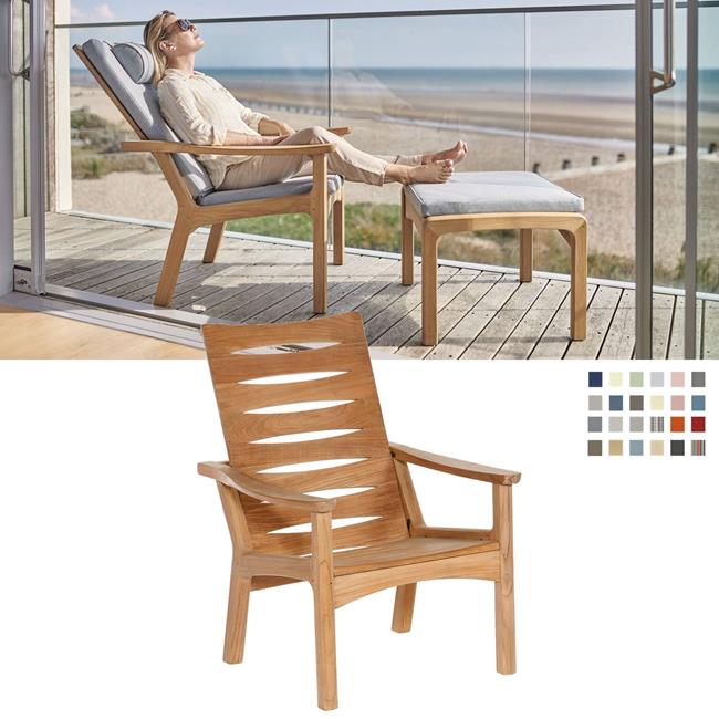 This elegant armchair is built using quality materials and refined traditional construction methods. Sculptured using a solid teak frame with Teak seat and back, together give a timeless appearance.
