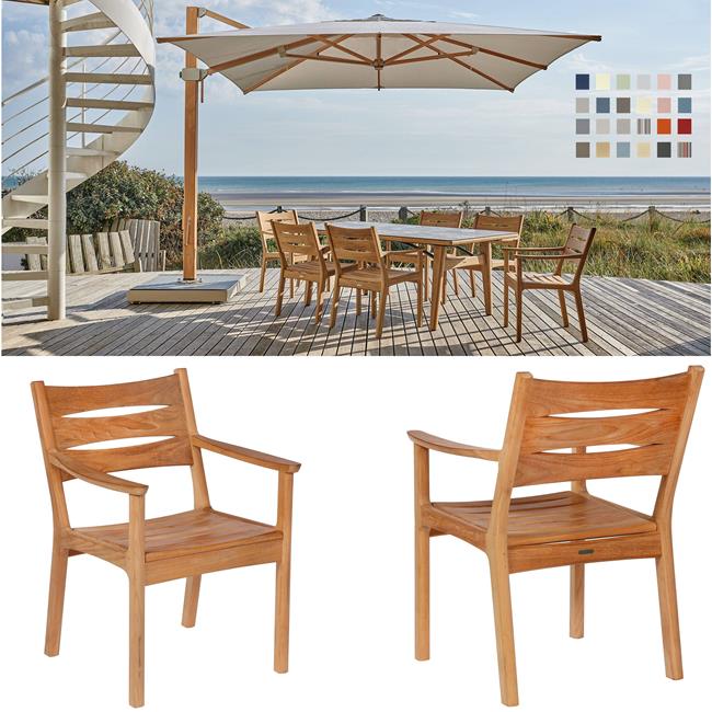 This elegant armchair is built using quality materials and refined traditional construction methods. Sculptured using a solid teak frame with Teak seat and back, together give a timeless appearance.