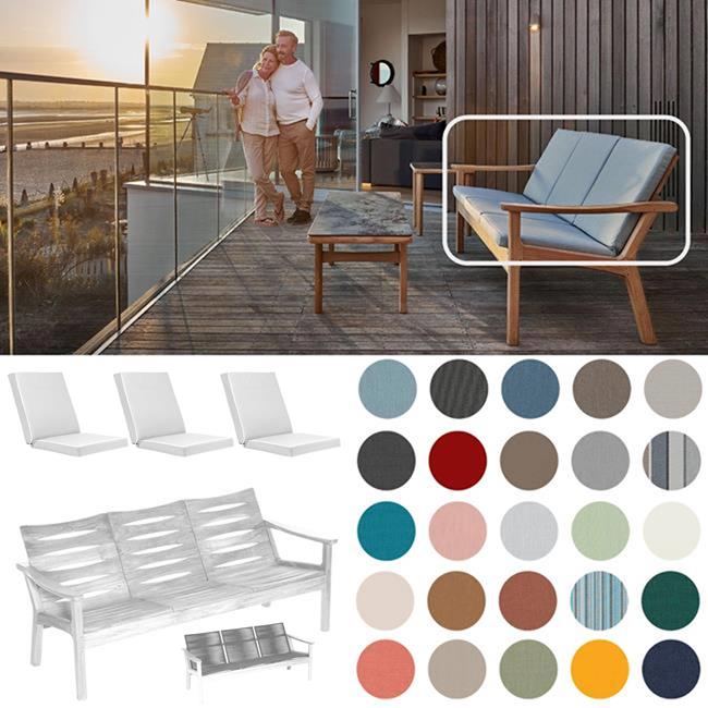 Increase the comfort and add a touch of elegance to your leisure hours with our range of tailored cushions. Made from Sunbrella fabric, the carefully selected colours enhance the classic lines of your outdoor furniture and will harmonise with any setting.