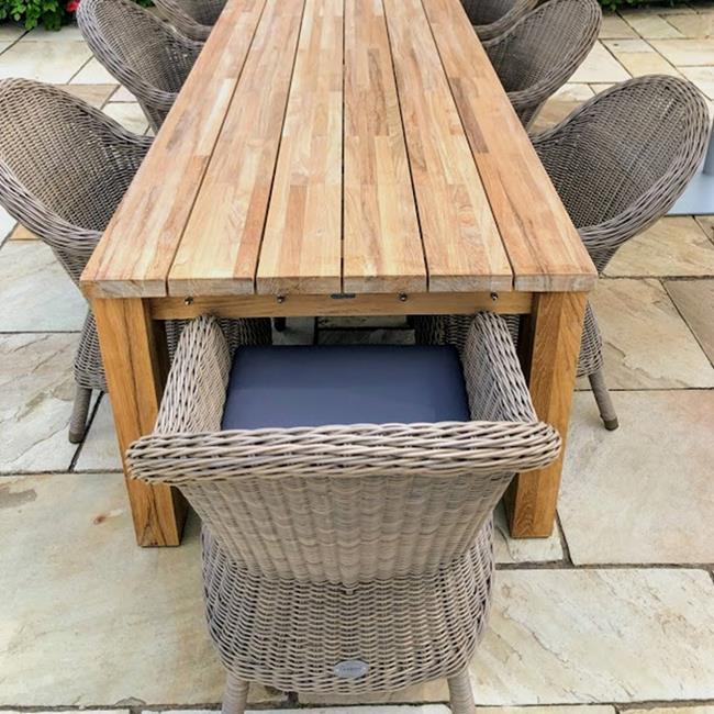 Barlow Tyrie Teak with Chunky Woven Dining Armchairs - the perfect combination of 2 gorgeous materials