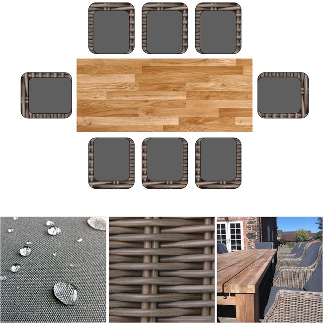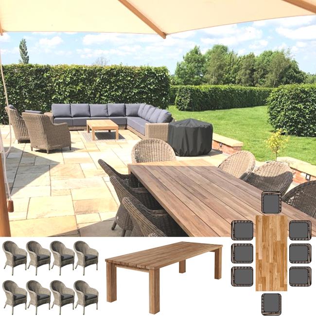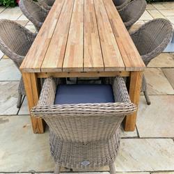 ![]() 8 Seater Dining Set 1 No. 240 x 100cm Titan Teak Table 8 No. Luxury Woven Armchairs Inc. Grey Waterproof Cushions IN STOCK IN STOCK For Immediate Delivery £ 6,199 If Collected Pls Call Product Code: BARLOWTITAN8 |