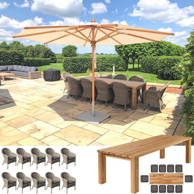 ![]() 10 Seater Dining Set 1 No. 300 x 100cm Titan Teak Table 10 No. Luxury Woven Armchairs Inc. Grey Waterproof Cushions Availability: IN STOCK Product Code: BARLOWTITAN10 |