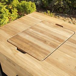 The Titan range is part of Barlow Tyrie's Rustic Teak collection. This particular piece uses rustic plantation teak featuring knots and a varied grain pattern, combined with black powder-coated aluminium frame.
