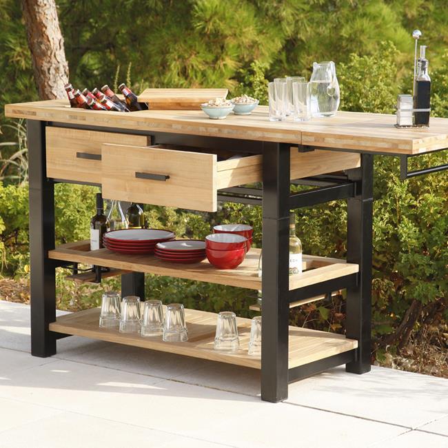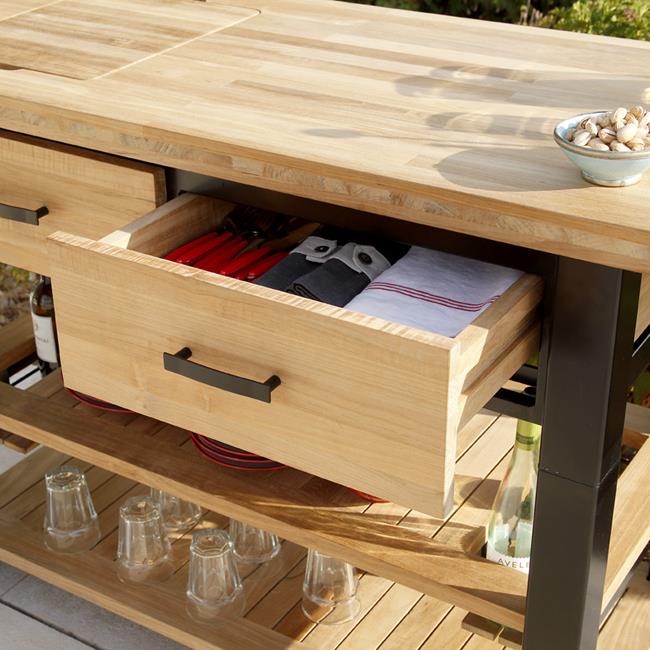 Barlow Tyrie Titan - Rustic Teak and Aluminium Extending Serving Table