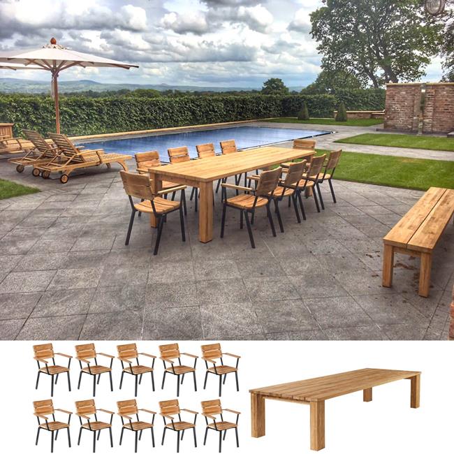 ![]() 10 Seater Teak Chair Dining Set 1 No. 300 x 100cm Dining Table 10 No. Dining Armchairs Availability: IN STOCK Product Code: BARTITSET008 |